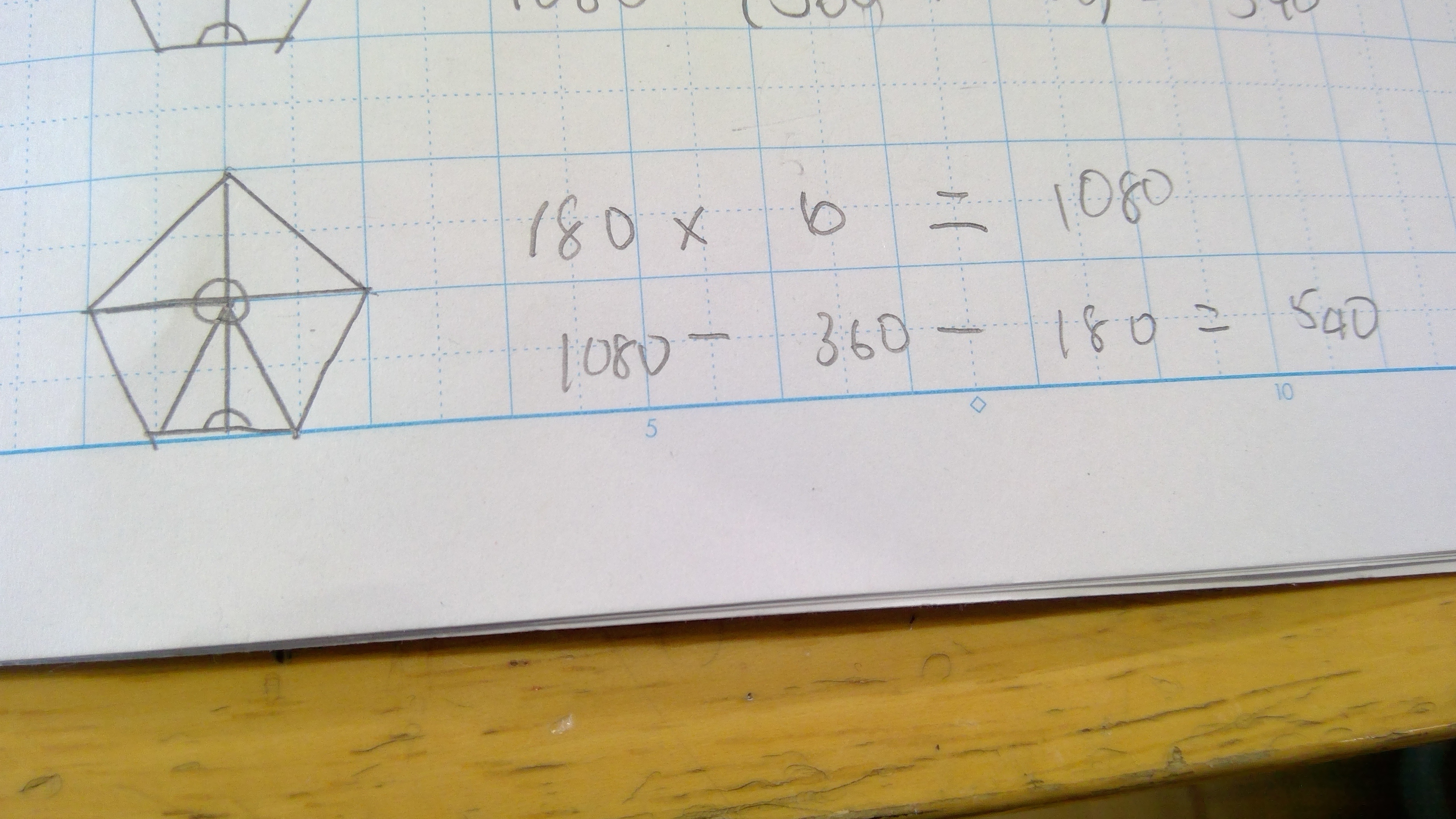 昨日は、「五角形の内角の和は何度になるのか」について考えました。
