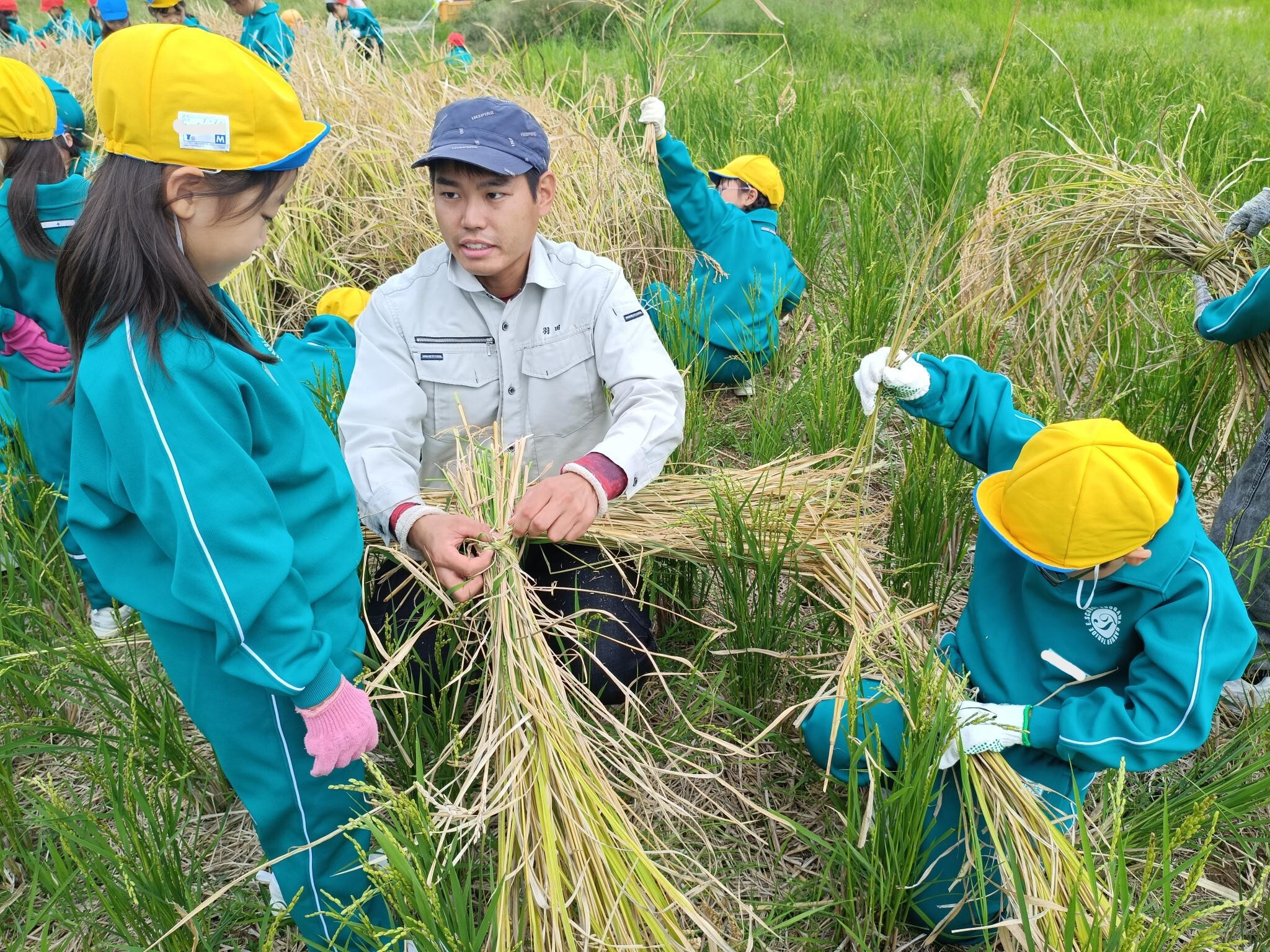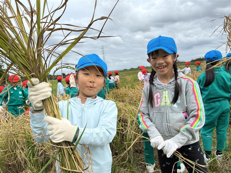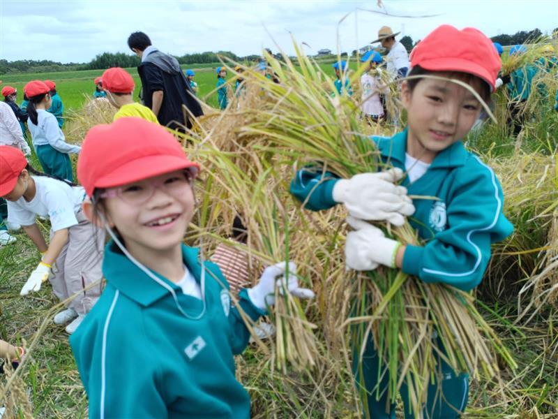 はじめは、恐る恐る鎌を使っていた子どもたちも、だんだん慣れてくると、ざくざく稲を刈ることができるようになりました。