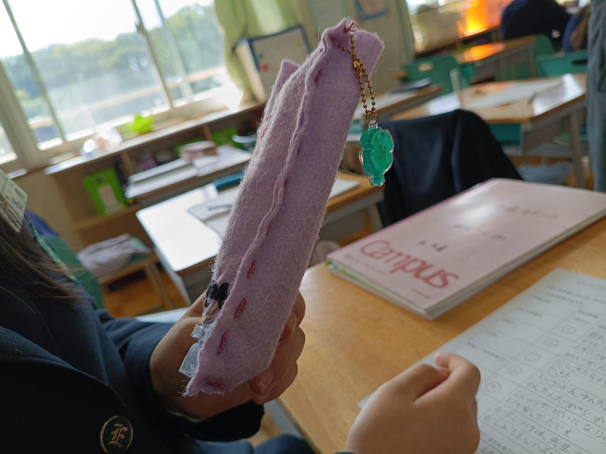 家庭科の学習では、のふりかえりを行いながら、自作の筆箱を見せてくれる子がいました。家庭科でのソーイングの学習を活用している姿に驚かされました。