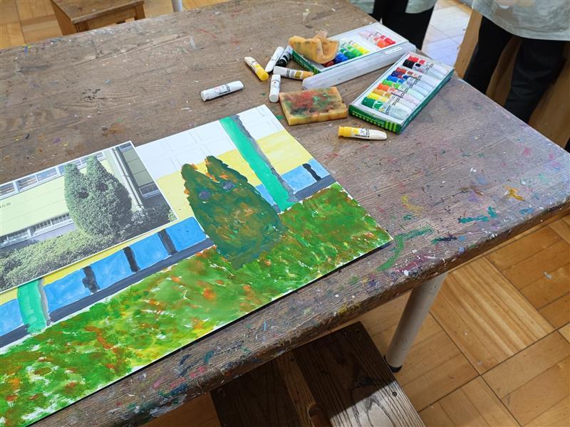 図工の学習では、写生画に取り組みながら、日常の空間を切り取り表現する奥深さを楽しく学んでいました。写真の構図を生かして、写真とは違った魅力が引き出されていく様子が興味深いです。