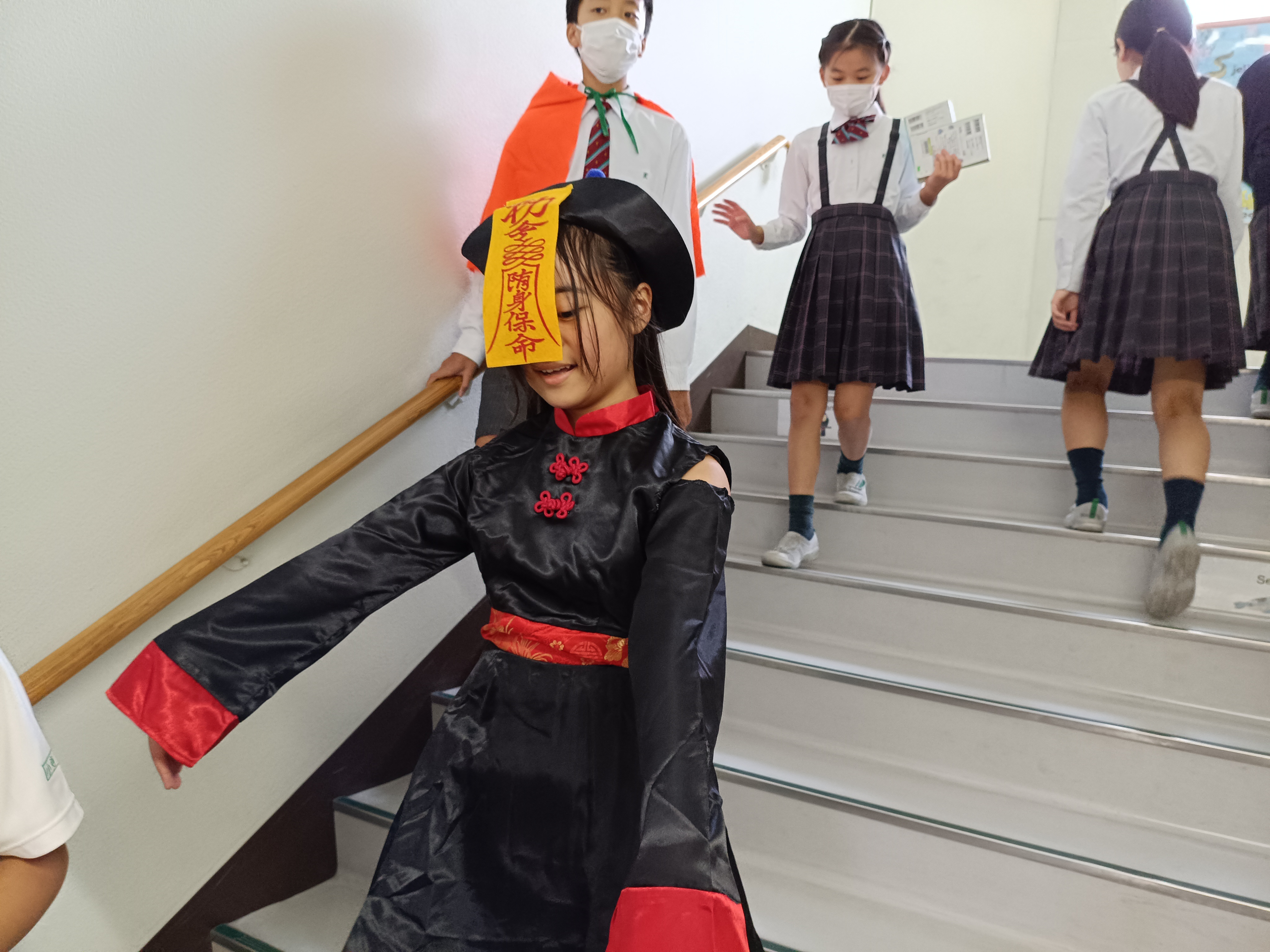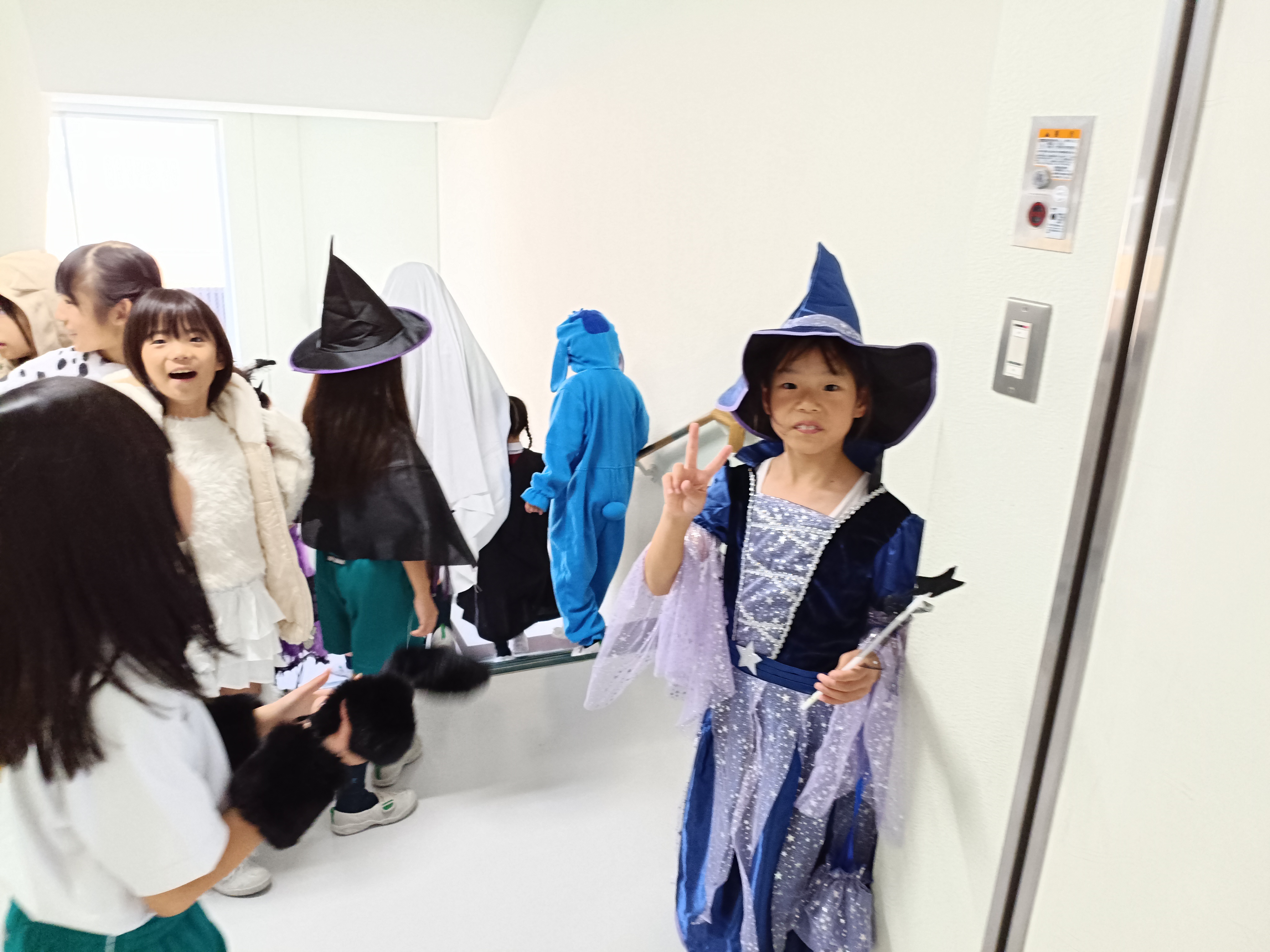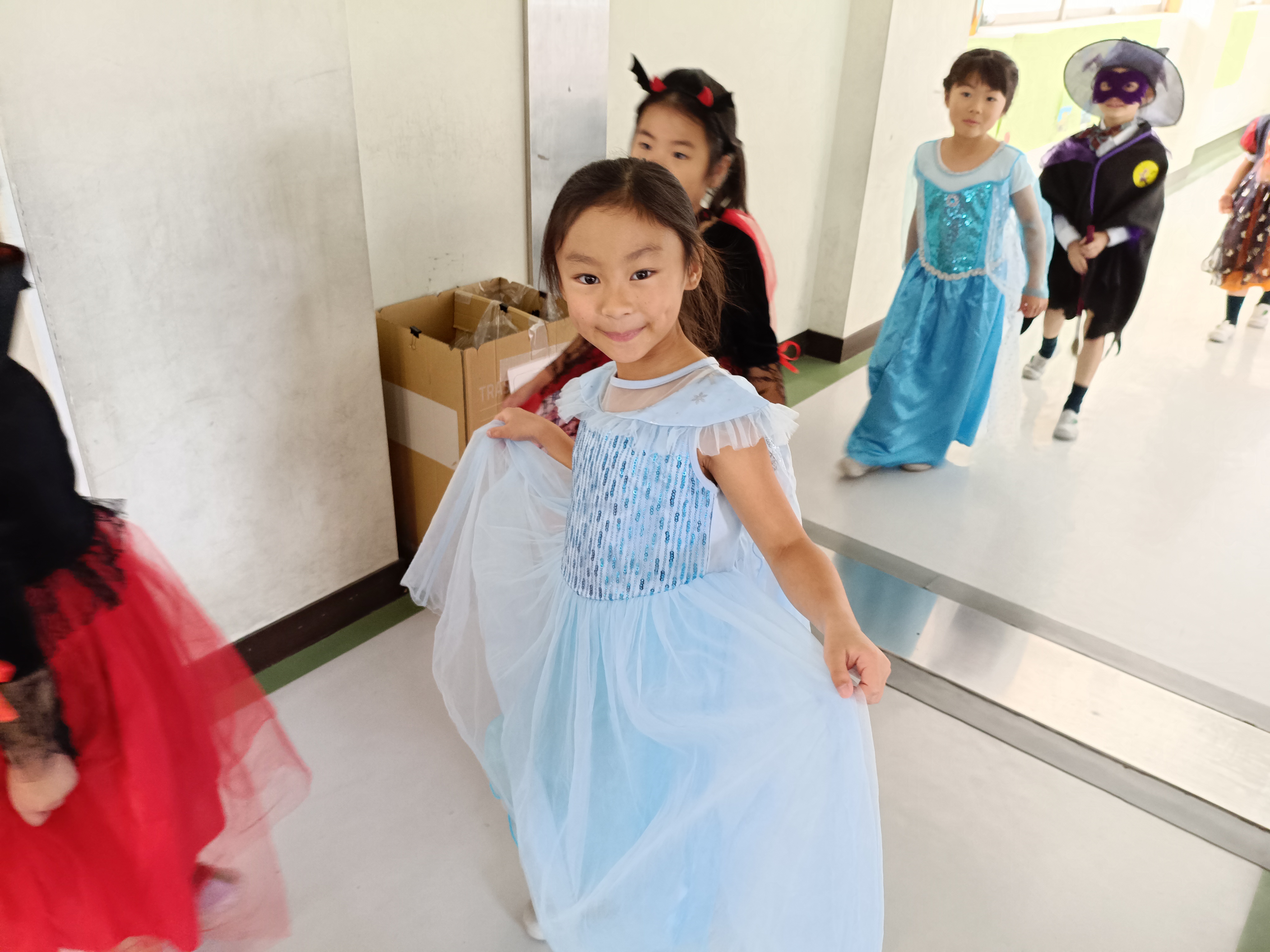 思い思いの仮装で笑顔いっぱい! 子どもたちは、ご家庭から持参した個性豊かな仮装に身を包み、校内をパレードしました。普段の制服姿とは違う子どもたちの弾けるような笑顔が校舎にあふれました。