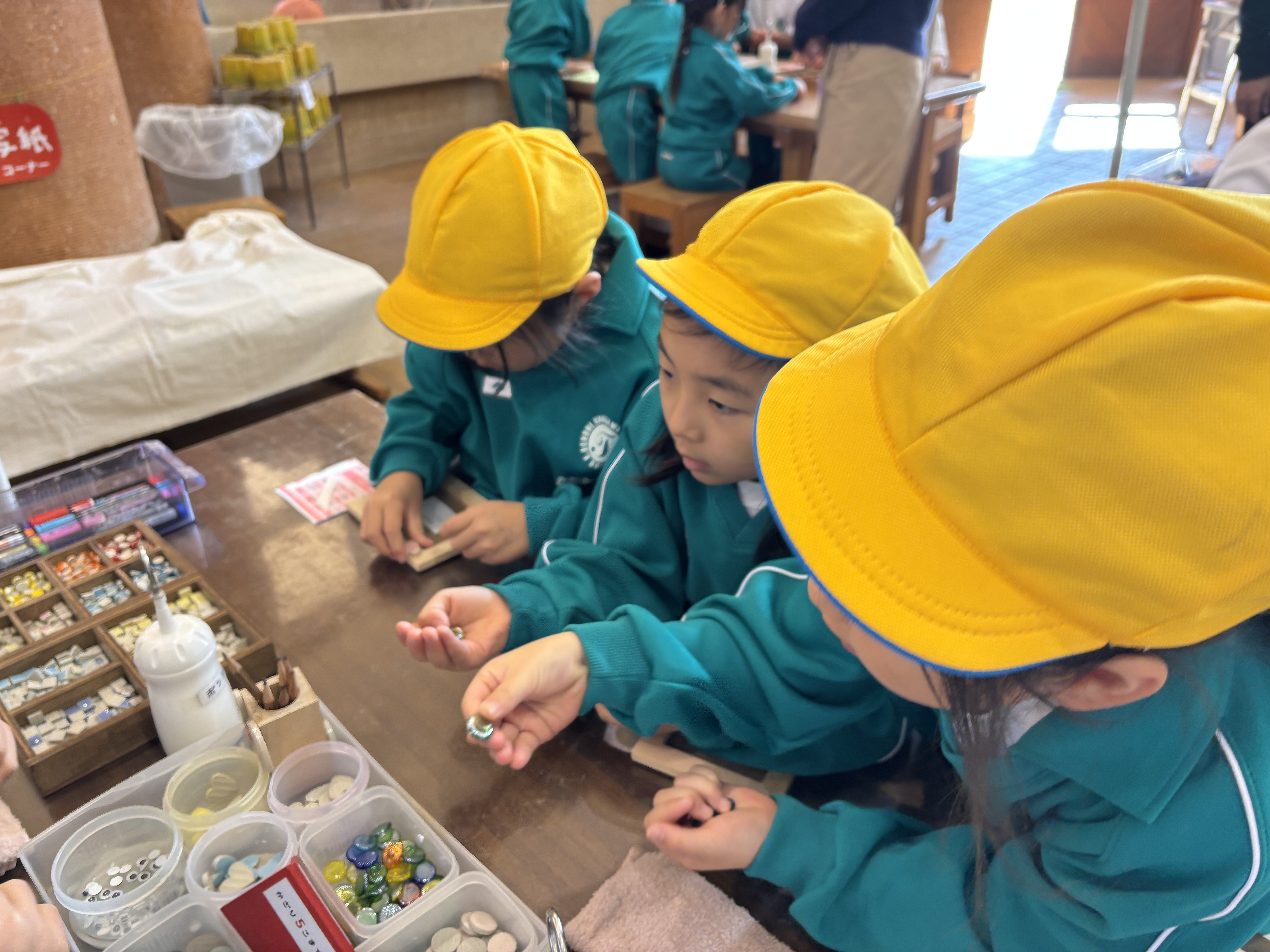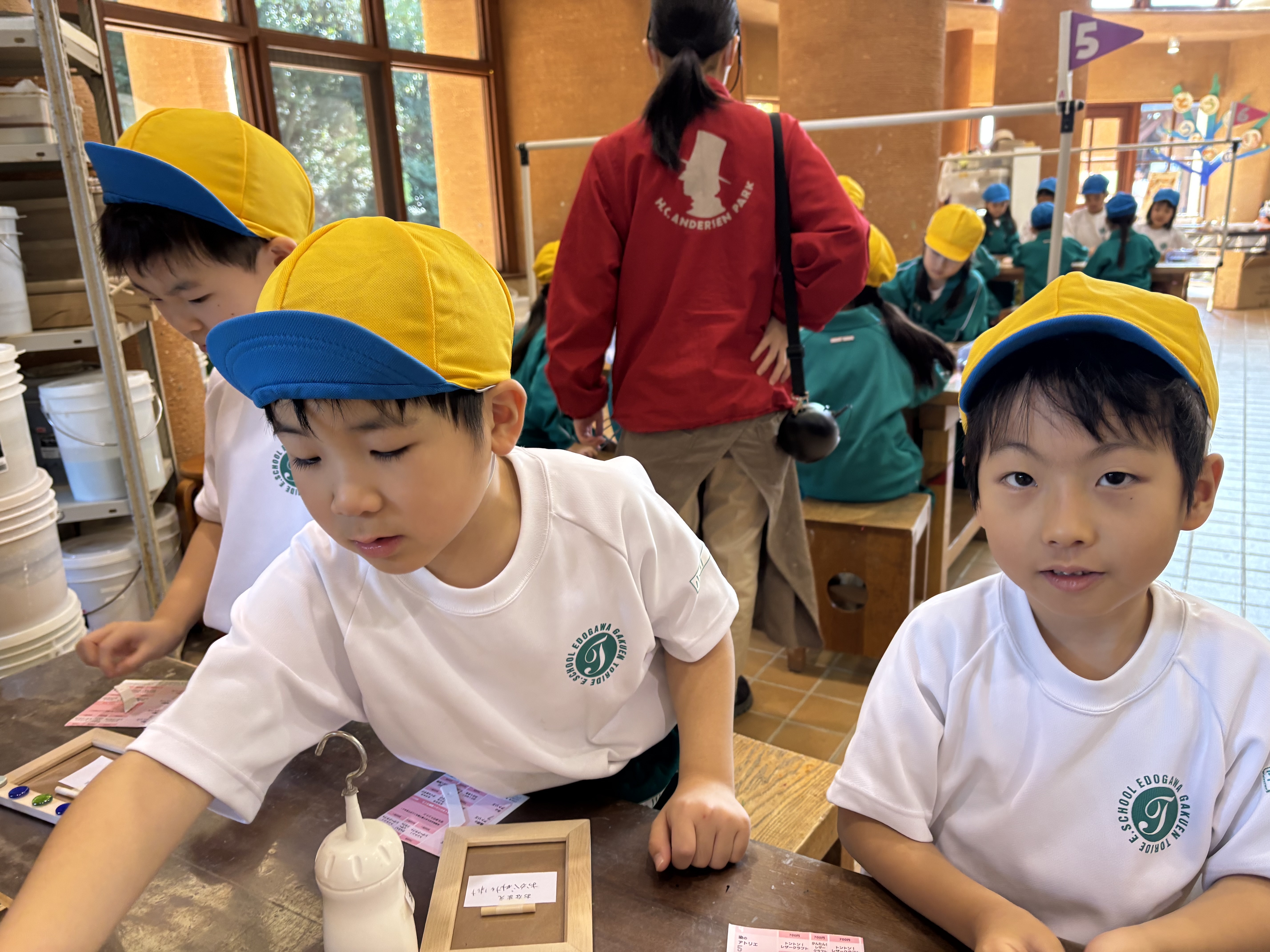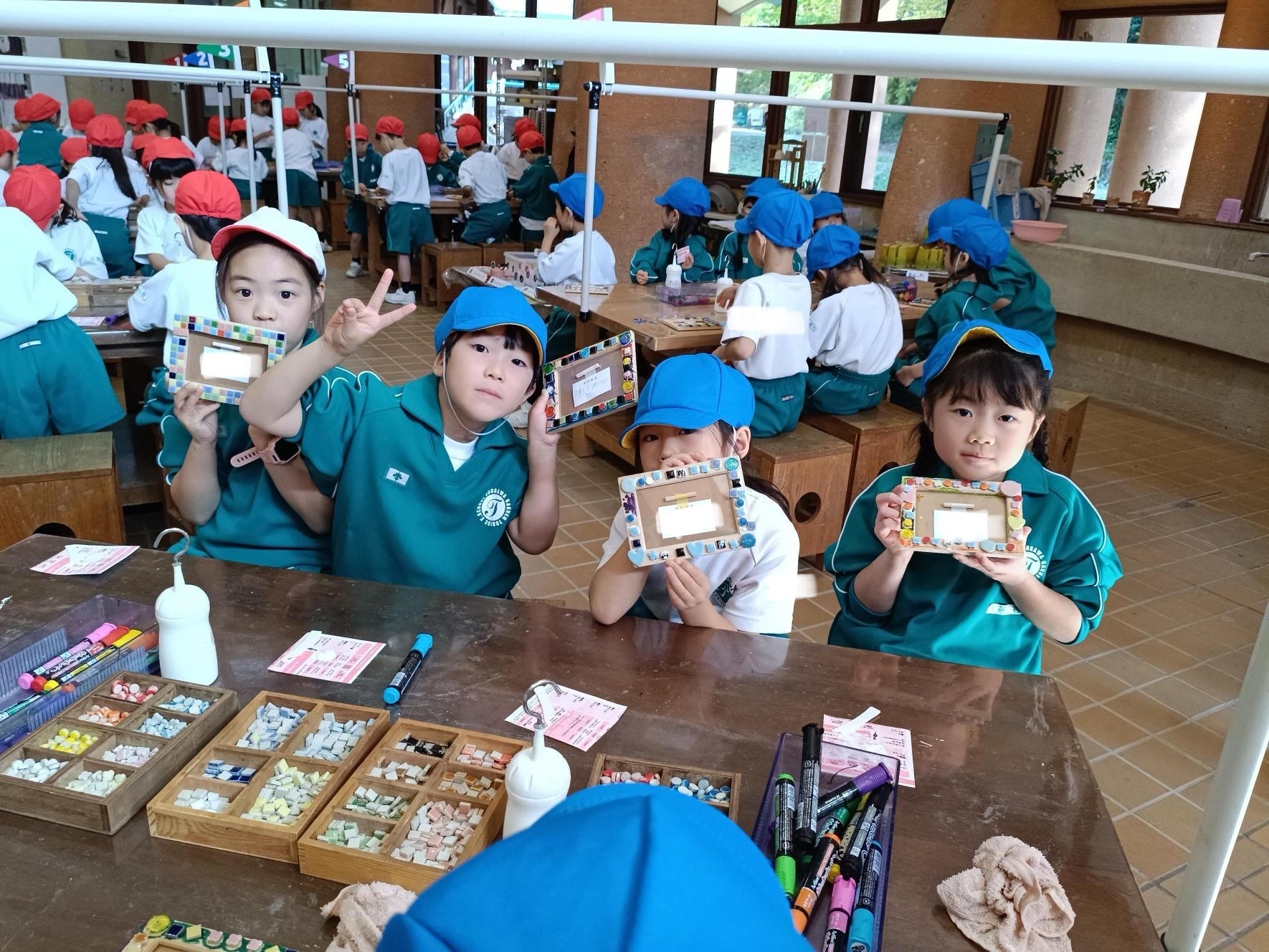 最高の天気の中、1年生は校外学習として、アンデルセン公園に行ってきました。陶芸体験は、つくる学年の腕の見せどころ!写真立てをタイルアートを使ってつくりました!それぞれの頭の中にあるイメージを具現化するのはなかなか難しく、何度も配置を変えながらボンドでタイルを貼り付けてオリジナルの写真立てを完成させました。また、広いアスレチック広場では、大滑り台、ターザンロープ、ボールトランポリン、フィールドアスレチックで大盛り上がり!楽しさ全開で校外学習を満喫しました!お約束も集合時間もしっかり守るつくる学年のみんなには、本当に成長を感じます!自然と共に、すくすく育て!つくるのみんな!