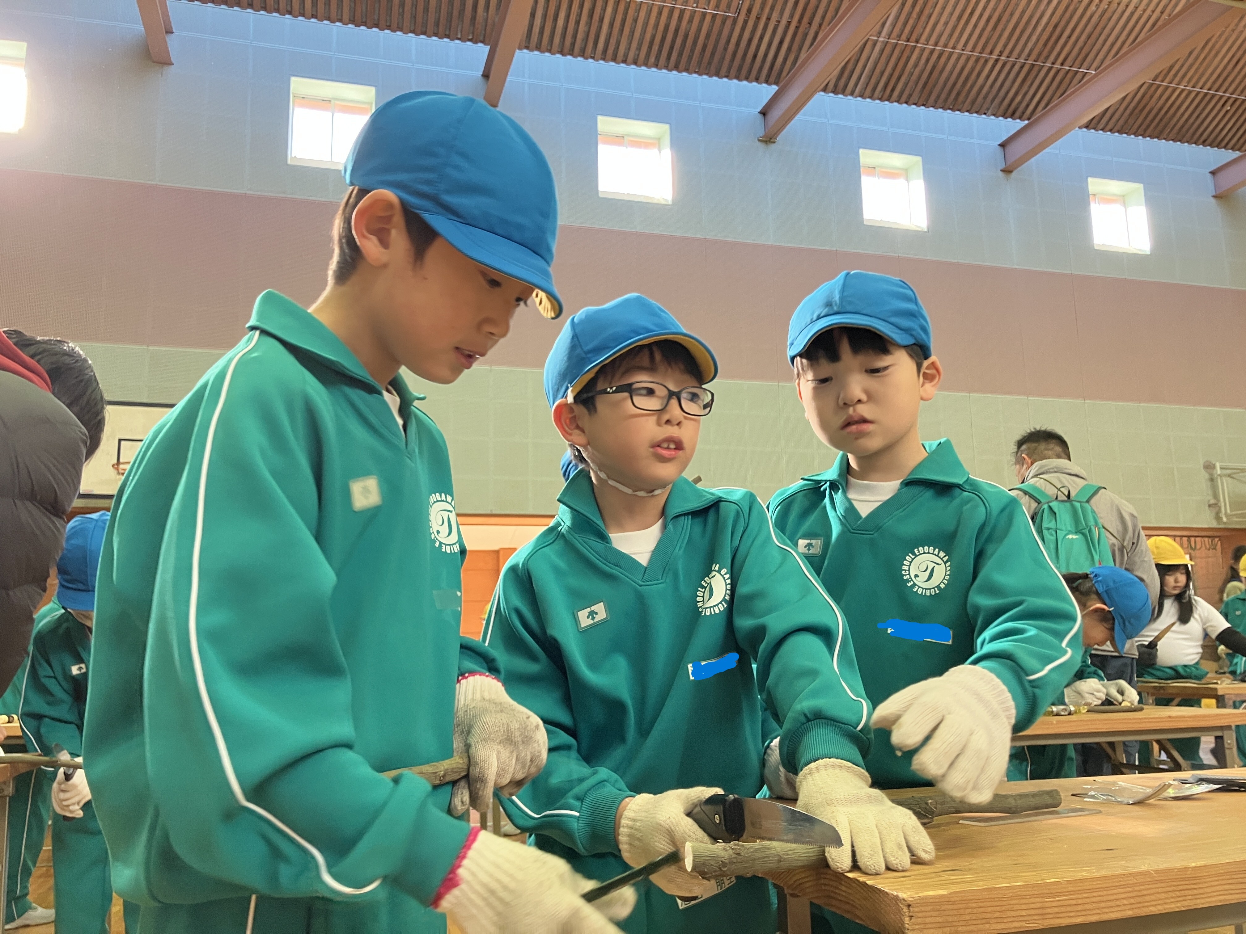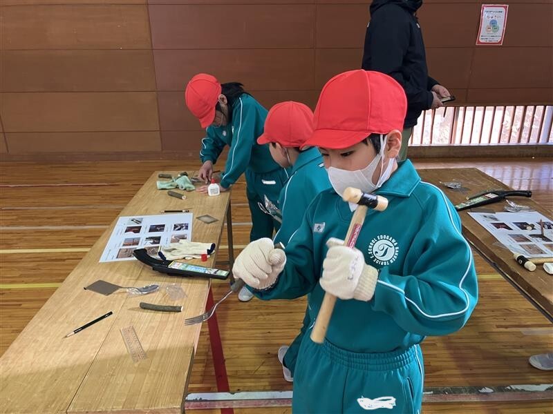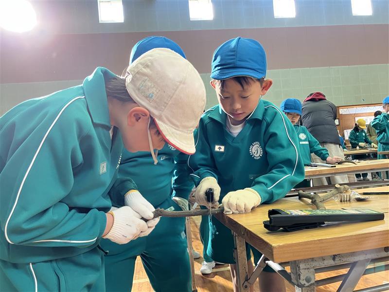 3年生の「あすなろの里」への校外学習、1回目の活動(飯盒炊爨)の後は、マイスプーン・マイフォークづくりを行いました。