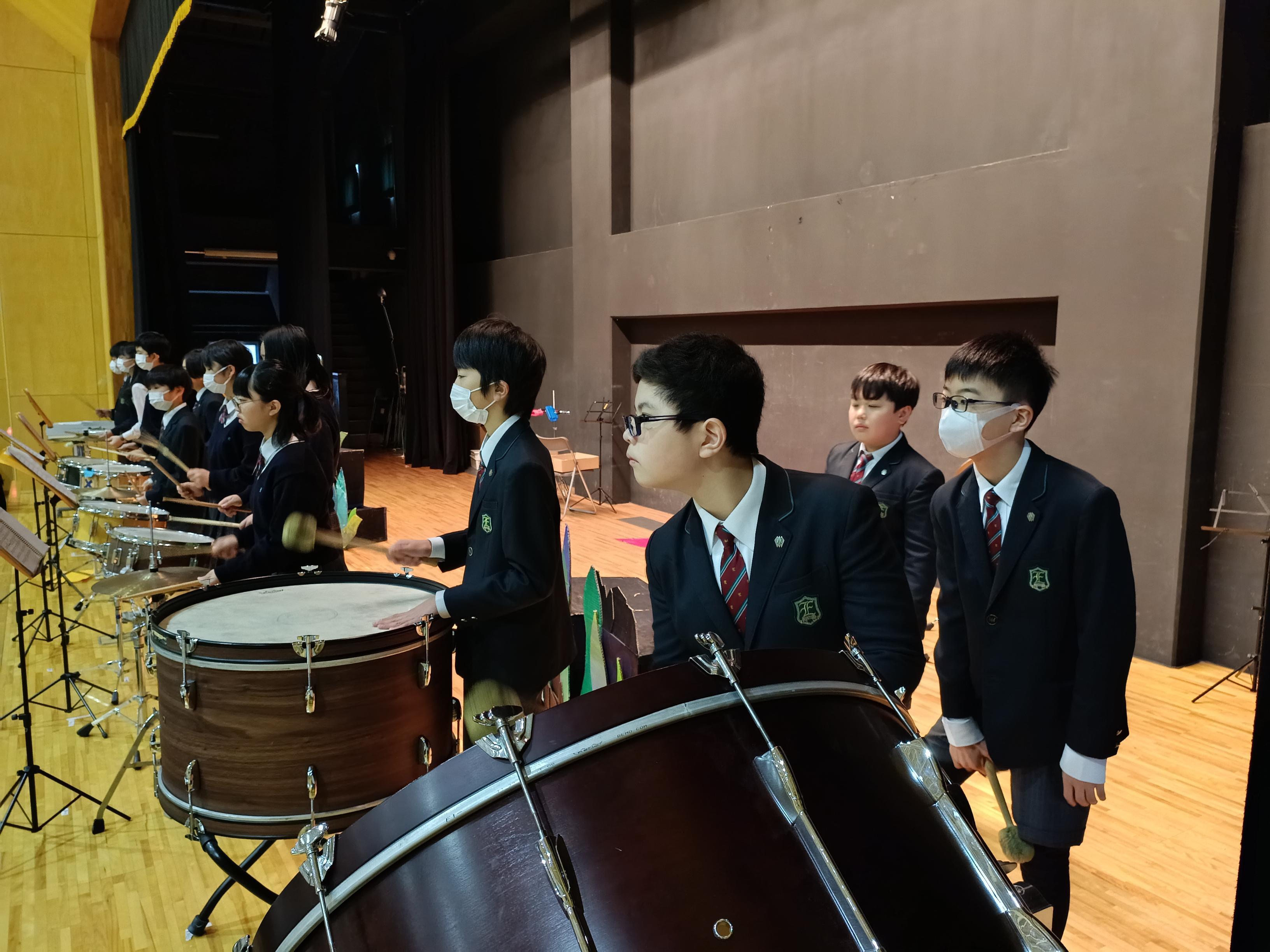 6年生の音楽発表会では、世俗カンタータ「カルミナ・ブラーナ」と「Departure」の2曲を、器楽合奏で披露しました。