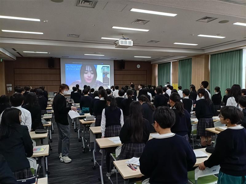 今週土曜日に実施するキャリア教育に向けて、今日は講師としてお招きする株式会社 BYDの方と、Zoom をつなぎ事前授業を行いました。テーマは、「まちのヒミツを見つけろ!取手調査隊」 です。最初にアイスブレイクをしたあと、さっそく本題へ。