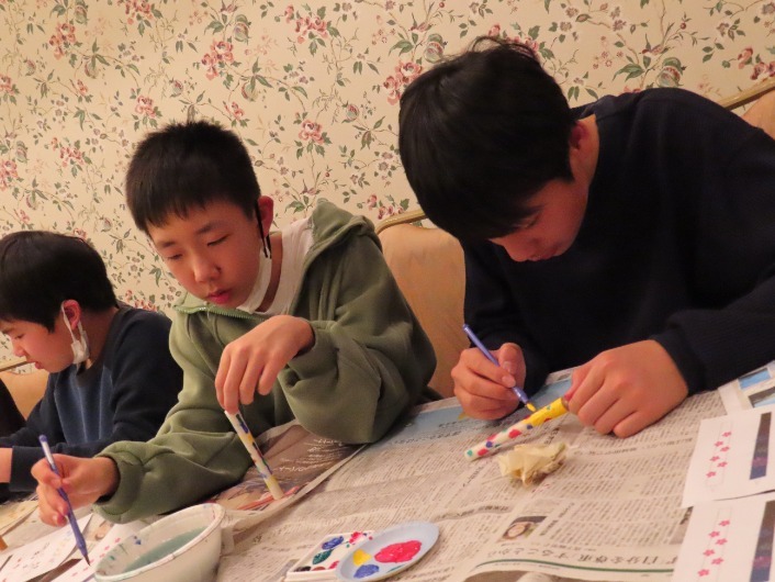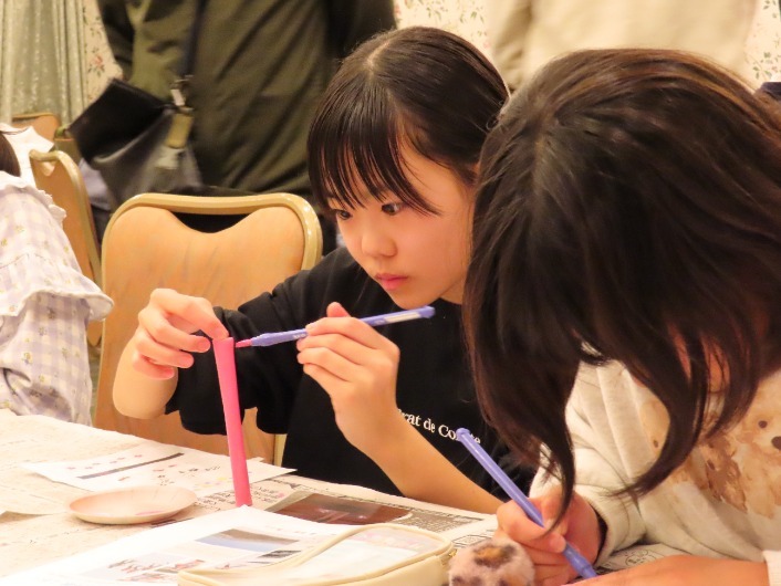また今日は、雪中体験や会津絵ろうそく絵付け体験も行いました。普段は近くで見ることのできない圧雪車を特別に近くで見せていただきました。さらに、大きな雪だるまやすべり台、かまくらをつくったり、雪玉を投げ合ったりして、雪を満喫しました。ろうそくには、思い思いのデザインを施し、すてきな絵ろうそくを完成させました。