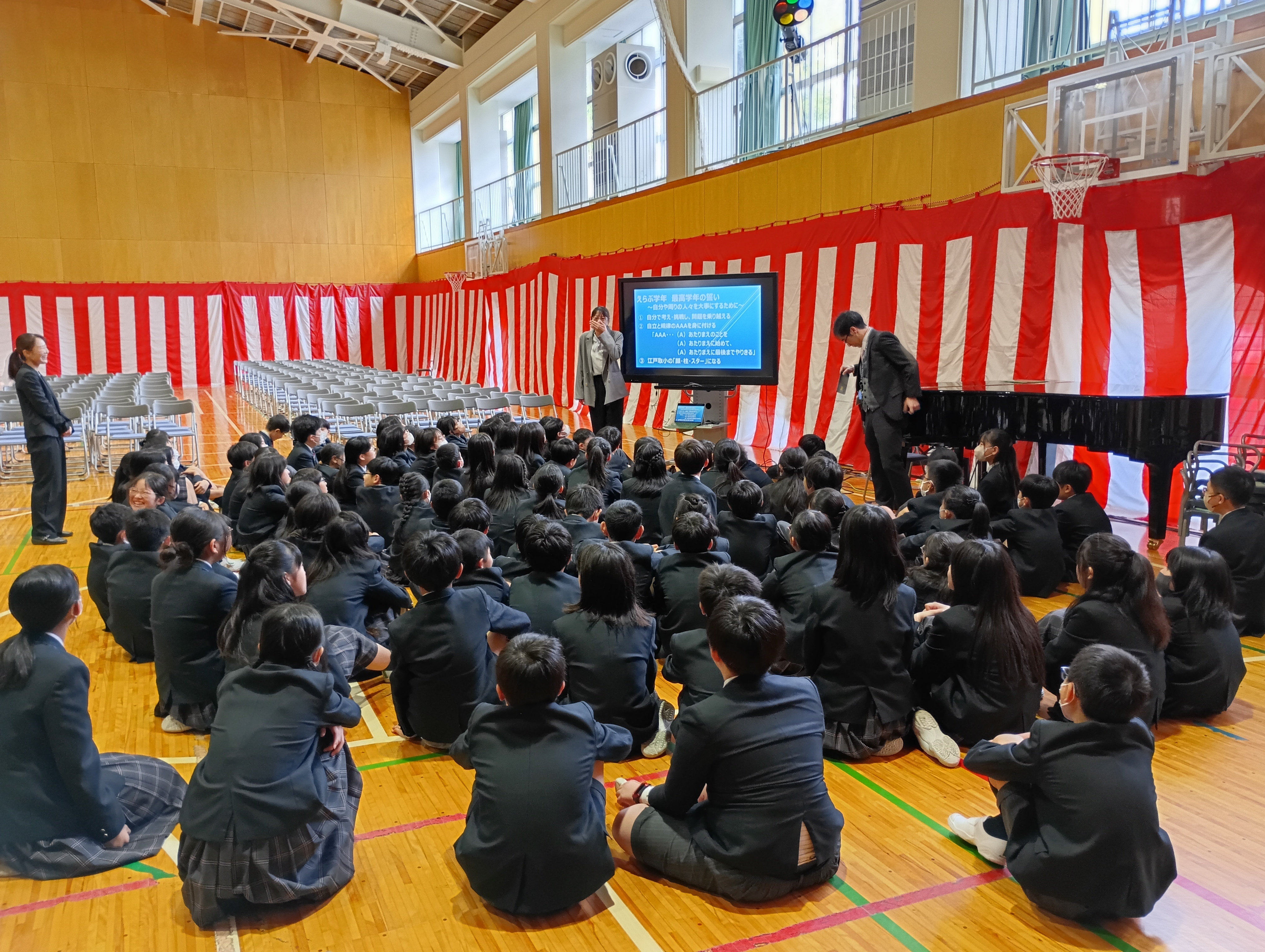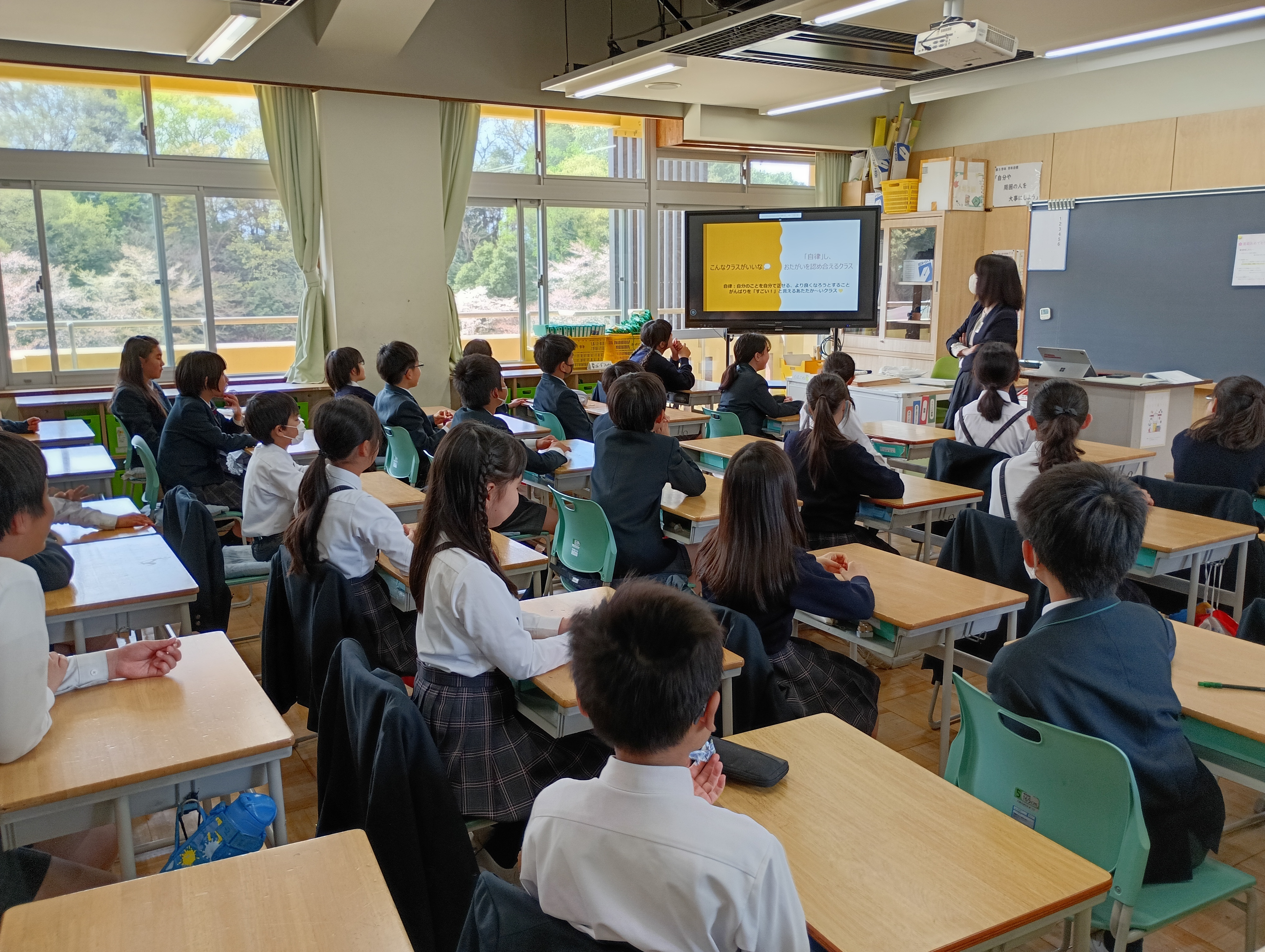 学年開きでは、先生の自己紹介や今年の目標の話に、子どもたちは背筋を伸ばして耳を傾けていました。「どんな一年になるんだろう」と目を輝かせる子、「がんばりたいこと」を心の中で確かめる子、それぞれの胸に、わくわくした気持ちが膨らんでいました。