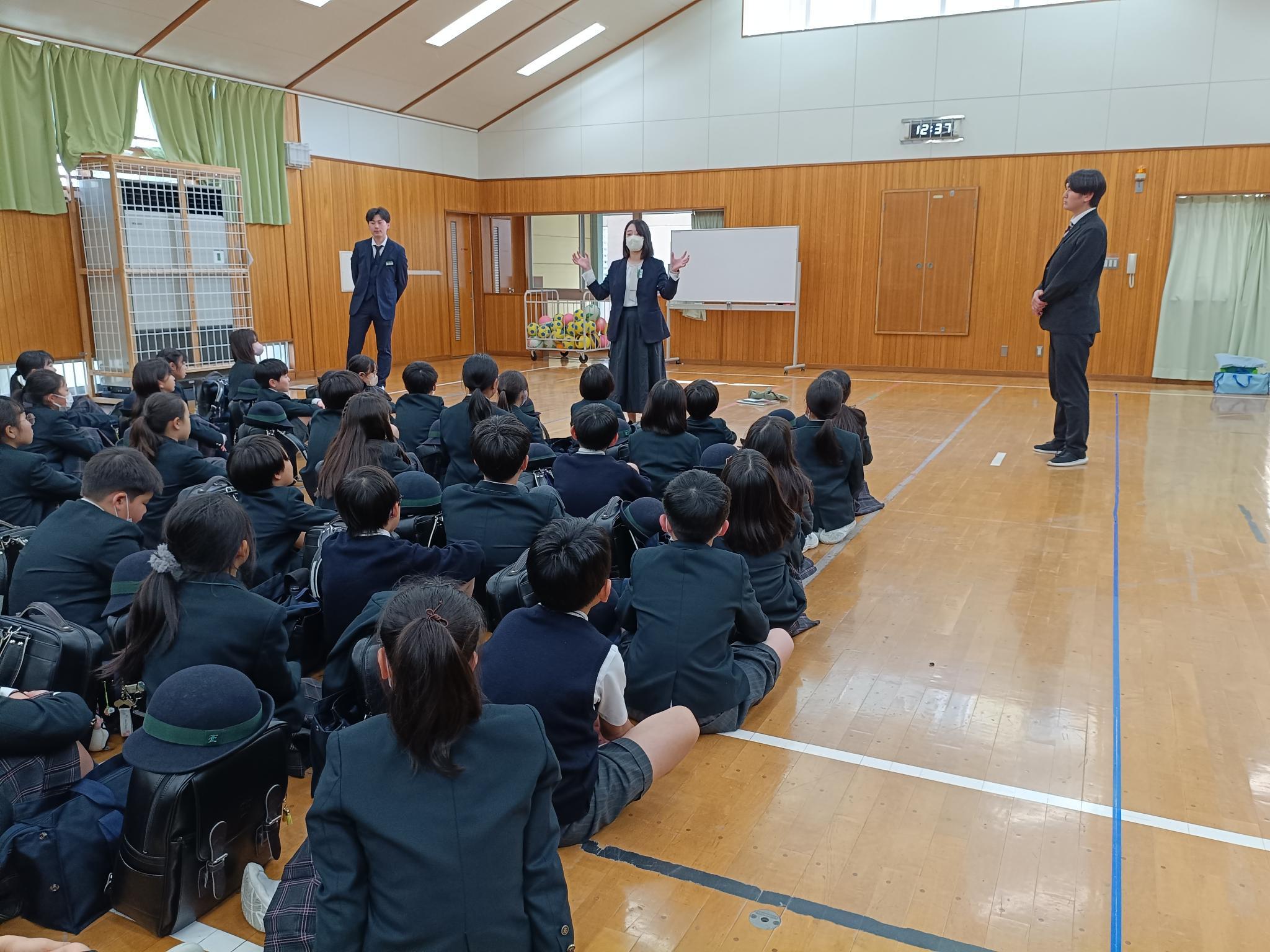 今日から、「みがく」としての第5学年が始まりました。体育館では、新しく担任の先生の紹介があり、みなさんわくわくどきどき。