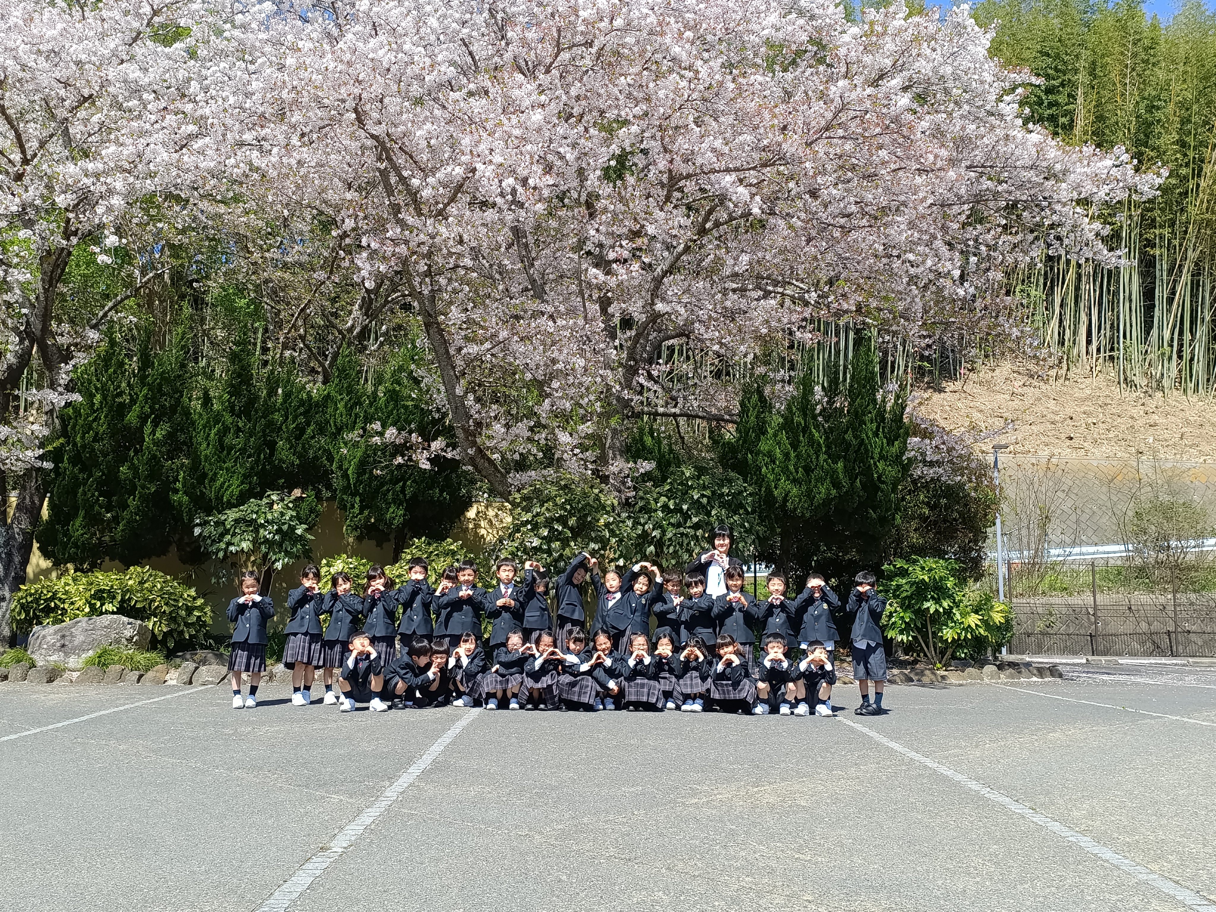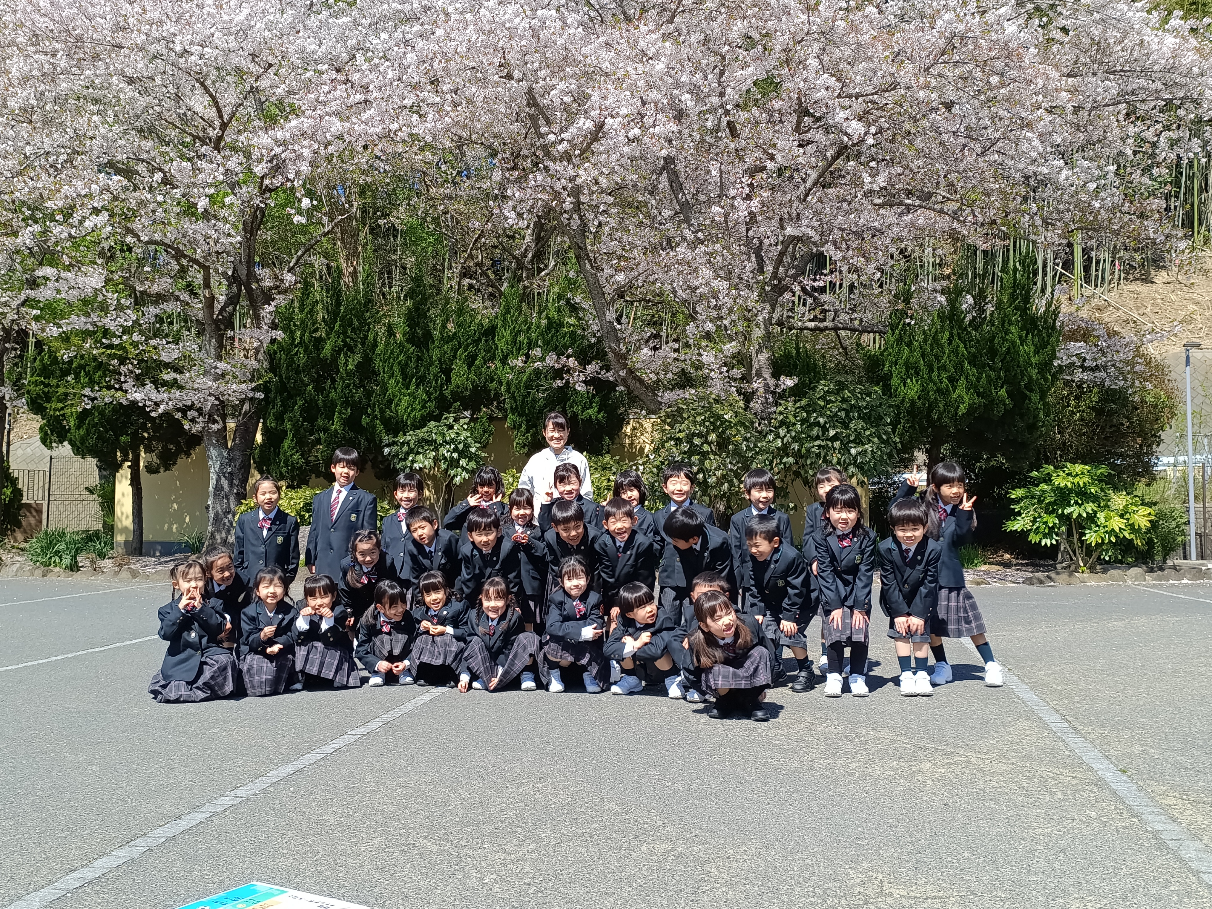 本日はその桜をバックに、クラスごとの写真撮影を行いました。