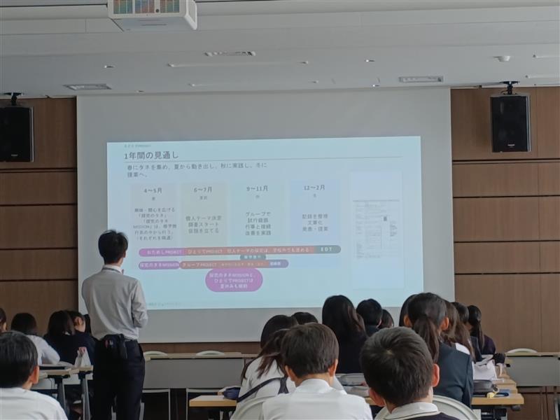 本日は、学年で探究活動のオリエンテーションを行いました。